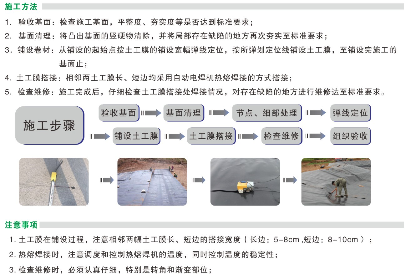 适用于生活垃圾填埋场防渗,固废填埋防渗,污水处理厂防渗,人工湖防渗,尾矿处理等防渗工程。